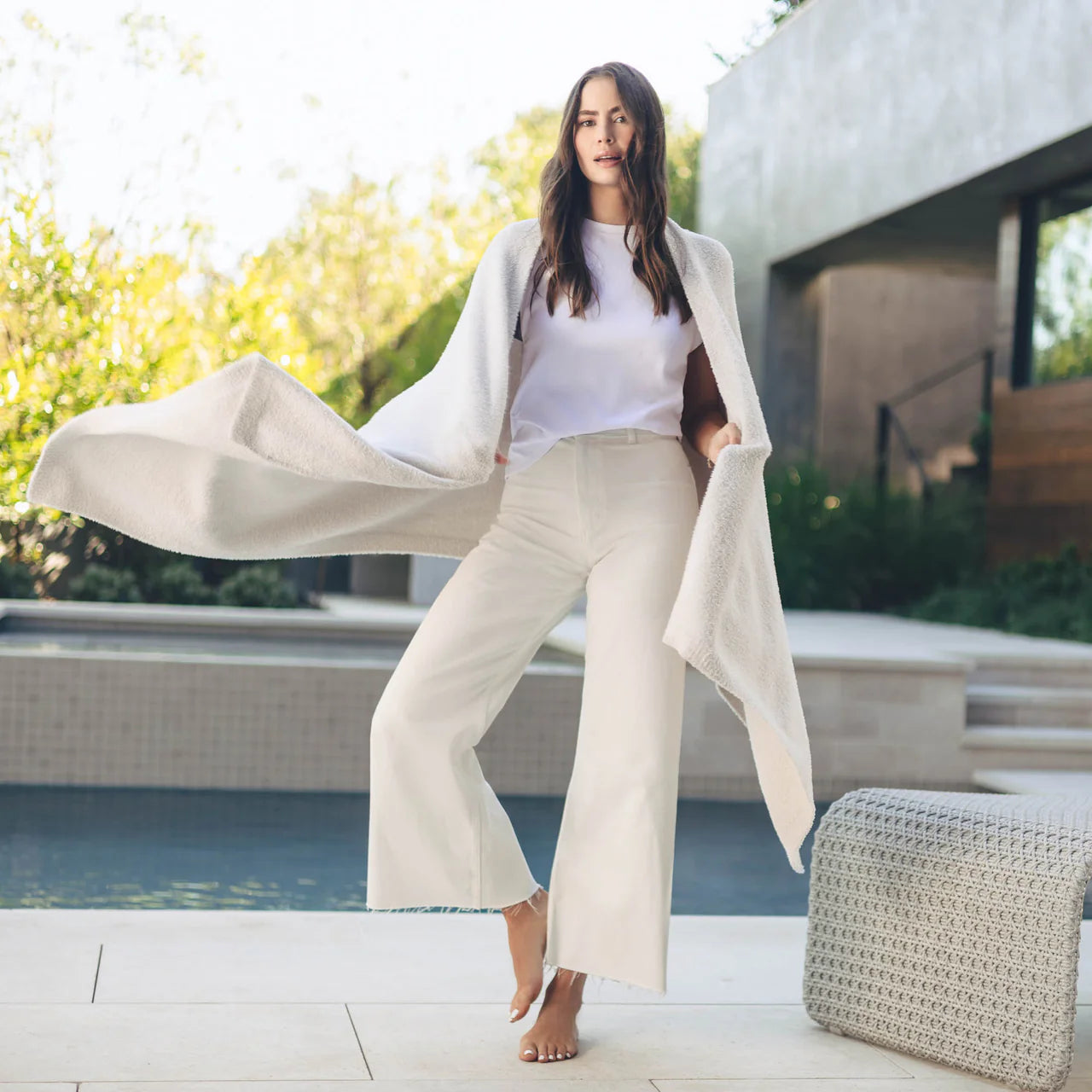 Versatile and enviously comfortable, the Everyday Shawl is perfect for cozy weekend brunches, movie dates in chilly theaters, post-yoga bundling, staying cozy while jet-setting, or simply lounging at home with your favorite book.